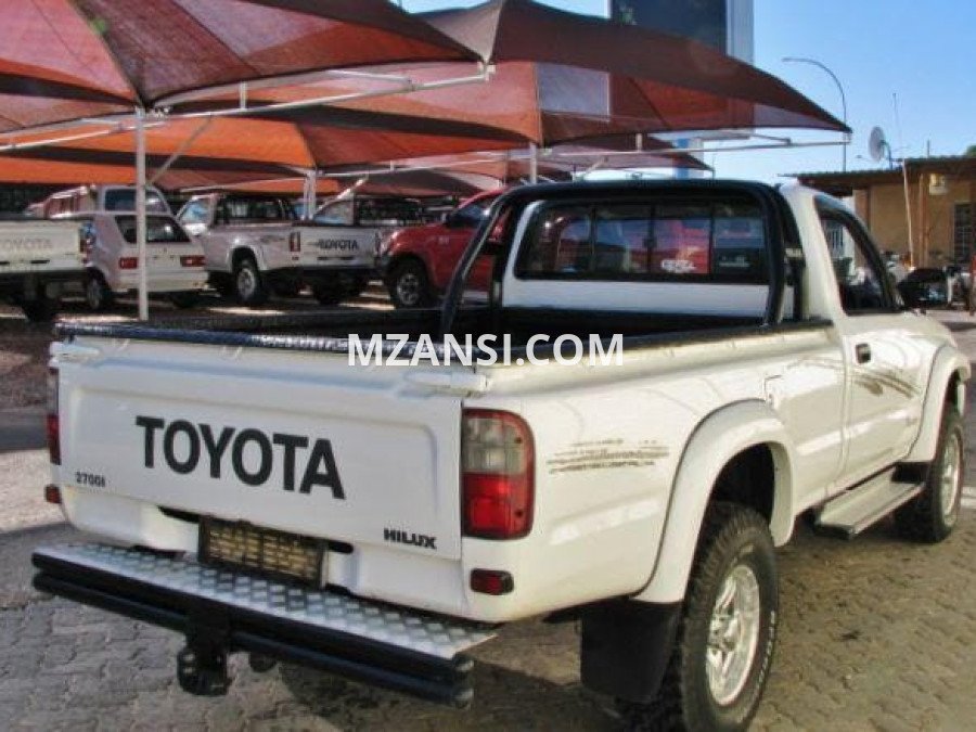 2000 TOYOTA HILUX 2.7 L Bakkie Single Cab 163,846 km mileage Price R 45 999 2.7L Engine Petrol Fuel Manual Transmission 4x2 Finance: Not available Tow bar , Boll bar , Running boards , Rubberized bin , Nudge bar , Spot lights , Mags CALL OR WHATSAPP MIKE AT +27605921376